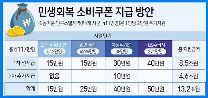 | 민생회복 소비쿠폰 대상 | 금액 |